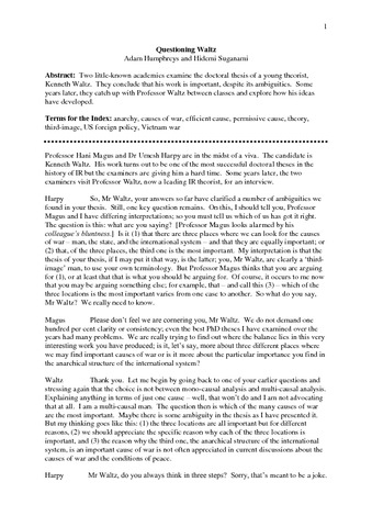 Two little-known academics examine the doctoral thesis of a young theorist, Kenneth Waltz. They conclude that his work is important, despite its ambiguities. Some years later, they catch up with Professor Waltz between classes and explore how his ideas have developed.