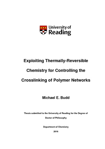 Budd, M. E. (2016) Exploiting thermally-reversible chemistry for controlling the crosslinking of polymer networks. PhD thesis, University of Reading.