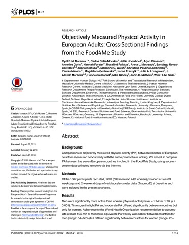 Objectively measured physical activity in European adults: cross-sectional findings from the Food4Me study.