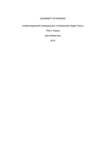 Rossi, J. (2016) Collabowrighting the hyper(play)text: a postdramatic digital poetics. PhD thesis, University of Reading.