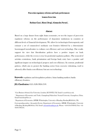 Casu B., Ferrari A., Zhao T., (2013), “Regulatory reform and productivity change in Indian banking”, Review of Economics and Statistics, 95(3): 1066-1077.