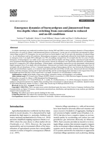 A cylinder experiment was conducted in northern Greece during 2005 and 2006 to assess emergence dynamics of barnyardgrass (Echinochloa crus-galli (L.) Beauv.) and jimsonweed (Datura stramonium L.) in the case of a switch from conventional to conservation tillage systems (CT). Emergence was surveyed from two burial depths (5 and 10 cm) and with simulation of reduced tillage (i.e. by soil disturbance) and no-till conditions. Barnyardgrass emergence was significantly affected by burial depth, having greater emergence from 5 cm depth (96%) although even 78% of seedlings emerged from 10 cm depth after the two years of study. Emergence of barnyardgrass was stable across years from the different depths and tillage regimes. Jimsonweed seeds showed lower germination than barnyardgrass during the study period, whereas its emergence was significantly affected by soil disturbance having 41% compared to 28% without disturbance. A burial depth x soil disturbance interaction was also determined, which showed higher emergence from 10 cm depth with soil disturbance. Jimsonweed was found to have significantly higher emergence from 10 cm depth with soil disturbance in Year 2. Seasonal emergence timing of barnyardgrass did not vary between the different burial depth and soil disturbance regimes, as it started in April and lasted until end of May in both years. Jimsonweed showed a bimodal pattern, with first emergence starting end of April until mid-May and the second ranging from mid-June to mid-August from 10 cm burial depth and from mid-July to mid-August from 5 cm depth, irrespective of soil disturbance in both cases.
