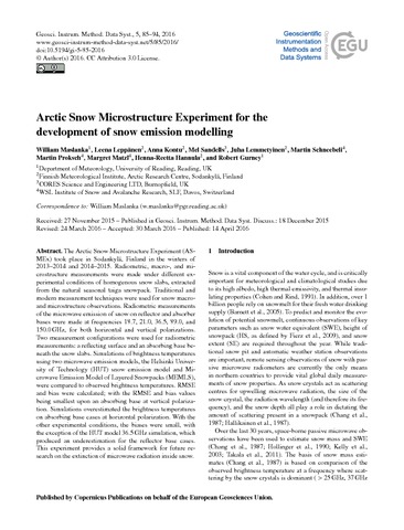 ORCID: https://orcid.org/0000-0002-1777-733X, Leppanen, L., Kontu, A., Sandells, M., Lemmetyinen, J., Schneebeli, M., Proksch, M., Matzl, M., Hannula, H.-R. and Gurney, R.