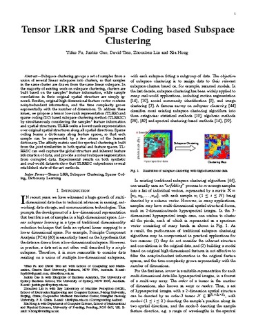 Fu, Y., Gao, J., Tien, D., Lin, Z. and Hong, X. orcid id iconORCID: https://orcid.org/0000-0002-6832-2298 (2016) Tensor LRR and sparse coding-based subspace clustering. IEEE Transactions on Neural Networks and Learning Systems, 27 (10). pp. 2120-2133. ISSN 2162-237X doi: 10.1109/TNNLS.2016.2553155