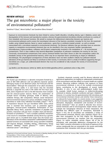 Claus, S. P., Guillou, H. and Ellero-Simatos, S. (2016) The gut microbiota: a major player in the toxicity of environmental pollutants? npj Biofilms and Microbiomes, 2. 16003. ISSN 2055-5008 doi: 10.1038/npjbiofilms.2016.3
