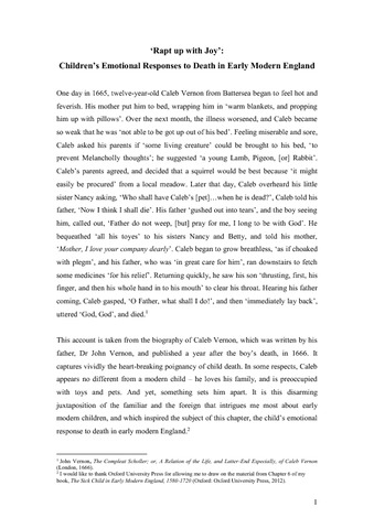 ‘Rapt up with joy’: children’s emotional responses to death in early modern England