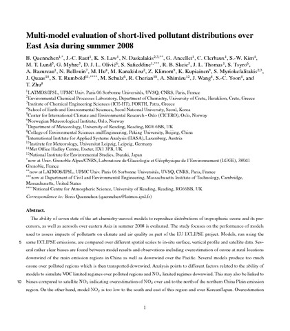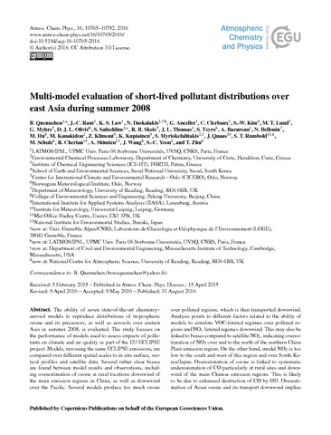 Multi-model evaluation of short-lived pollutant distributions over East Asia during summer 2008.