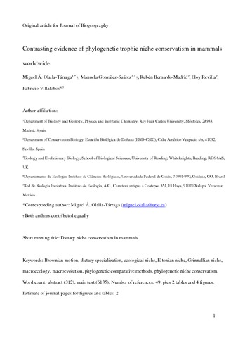 Olalla-Tarraga, M. A., Gonzalez-Suarez, M. ORCID: https://orcid.org/0000-0001-5069-8900, Bernardo-Madrid, R., Revilla, E. and Villalobos, F.