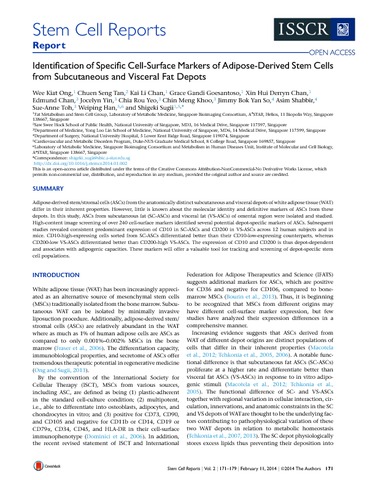 Ong, W. K., Tan, C. S., Chan, K. L., Goesantoso, G. G., Chan, X. H. D., Chan, E., Yin, J., Chia, R. Y., Khoo, C. M., So, J. B. Y., Shabbir, A., Toh, S.-A., Han, W. and Sugii, S. (2014) Identification of specific cell-surface markers of adipose-derived stem cells from subcutaneous and visceral fat depots. Stem Cell Reports, 2 (2). pp. 171-179. ISSN 2213-6711 doi: 10.1016/j.stemcr.2014.01.002