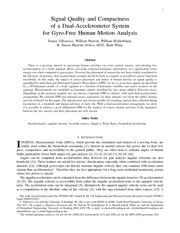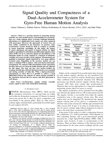 Signal quality and compactness of a dual-accelerometer system for gyro-free human motion analysis.