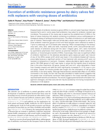 Excretion of antibiotic resistance genes by dairy calves fed milk replacers with varying doses of antibiotics.