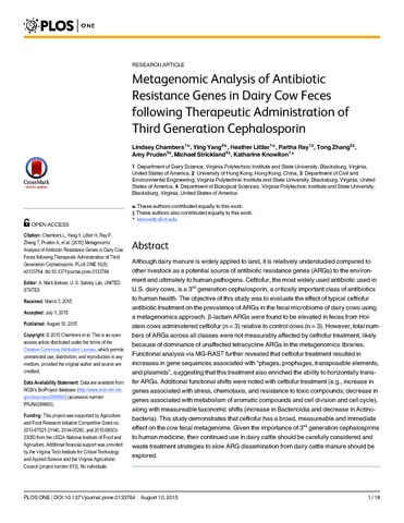 Metagenomic analysis of antibiotic resistance genes in dairy cow feces following therapeutic administration of