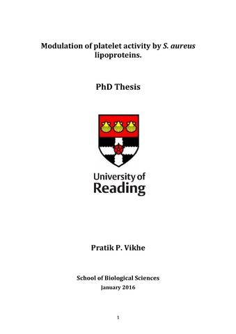 Vikhe, P. P. (2016) Modulation of platelet activity by S. aureus lipoproteins. PhD thesis, University of Reading.