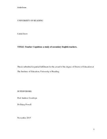 Enow, L. (2016) Teacher cognition: a study of secondary English teachers. EdD thesis, University of Reading.