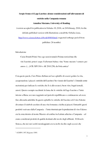 Sergio Orata e il Lago Lucrino: alcune considerazioni sull’allevamento di ostriche nella Campania romana.
