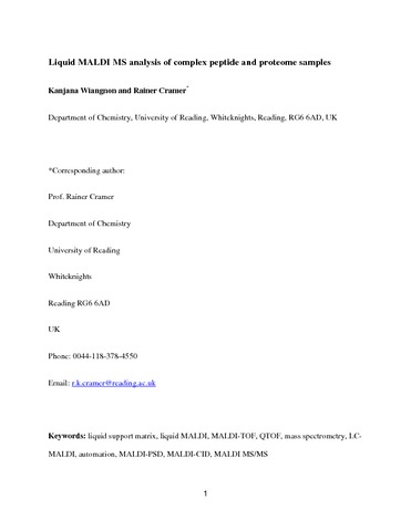 Liquid MALDI MS analysis of complex peptide and proteome samples.