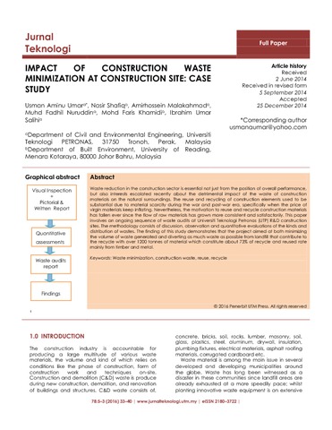 Umar, U. A., Shafiq, N., Malakahmad, A., Nuruddin, M. F., Khamidi, M. F. and Salihi, I. U. (2016) Impact of construction waste minimization at construction site: case study. Jurnal Teknologi, 78 (5-3). pp. 33-40. ISSN 2180-3722 doi: 10.11113/jt.v78.8508