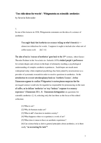 ‘Too ridiculous for words’: Wittgenstein on scientific aesthetics.