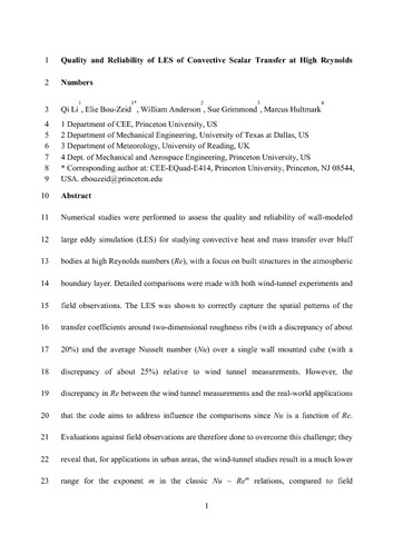Uncontrolled Keywords | Forced convective heat transfer; Large-eddy simulation; Rough walls; Urban heat exchange |