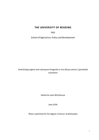 Whitehouse, K. J. (2016) Seed drying regime and subsequent longevity in rice (Oryza sativa L.) genebank accessions. PhD thesis, University of Reading.
