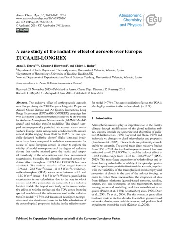 A case study of the radiative effect of aerosols over Europe: EUCAARI-LONGREX.