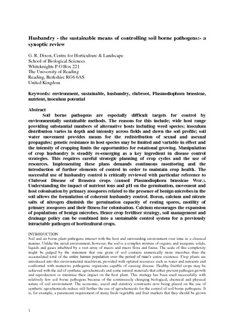 Dixon, G. R. (2009) Husbandry-the sustainable means of controlling soil borne pathogens-a review. Acta Horticulturae, 817. pp. 233-242. ISSN 0567-7572