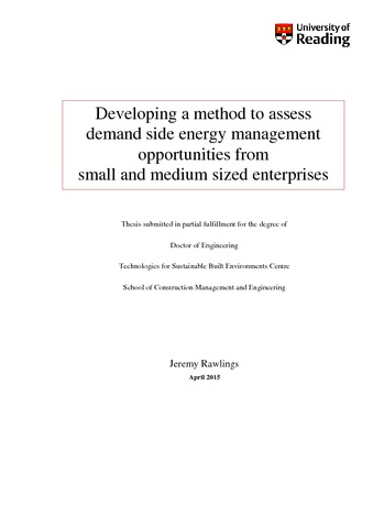 Rawlings, J. (2016) Developing a method to assess demand side energy management opportunities from small and medium sized enterprises. EngD thesis, University of Reading.