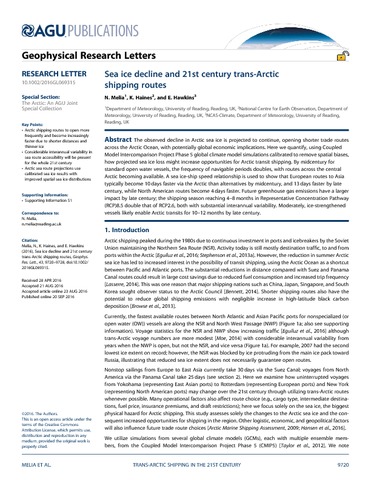 Sea ice decline and 21st century trans-Arctic shipping routes.