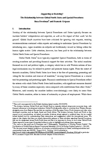 Supporting or resisting? The relationship between global north states and special procedures.