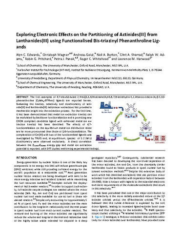 Exploring electronic effects on the partitioning of actinides(III) from lanthanides(III) using functionalised bis-triazinyl phenanthroline ligands.