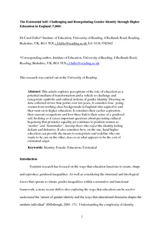 The existential self: challenging and renegotiating gender identity through higher education in England.