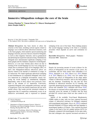 Uncontrolled Keywords | Bilingualism, basal ganglia, thalamus, structural MRI, immersion |