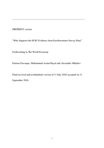 Who supports the ECB? Evidence from Eurobarometer survey data.