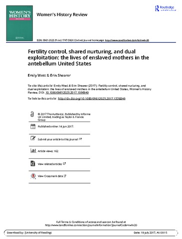 Fertility control, shared nurturing, and dual exploitation: the lives of enslaved mothers in the antebellum United States.