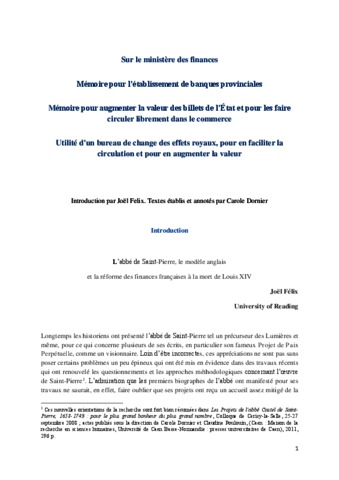 L’abbé de Saint-Pierre, le modèle anglais et la réforme des finances françaises à la mort de Louis XIV.