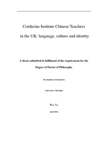 Ye, W. (2016) Confucius Institute Chinese Teachers in the UK: language, culture and identity. PhD thesis, University of Reading.
