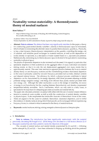 Neutrality versus materiality: a thermodynamic theory of neutral surfaces.