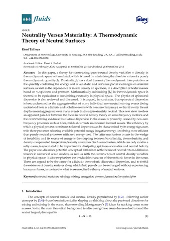 In this paper, a theory for constructing quasi-neutral density variables $\gamma$ directly in thermodynamic space is formulated, which is based on minimising the absolute value of a purely thermodynamic quantity $J_n$. Physically, $J_n$ has a dual dynamic/thermodynamic interpretation as the quantity controlling the energy cost of adiabatic and isohaline parcel exchanges on material surfaces, as well as the dependence of in-situ density on spiciness, in a description of water masses based on $\gamma$, spiciness and pressure. Mathematically, minimising $|J_n|$ in thermodynamic space is showed to be equivalent to maximising neutrality in physical space. The physics of epineutral dispersion is also reviewed and discussed. It is argued, in particular, that epineutral dispersion is best understood as the aggregate effect of many individual non-neutral stirring events, so that it is only the net displacement aggregated over many events that is approximately neutral. This new view resolves an apparent paradox between the focus in neutral density theory on zero-buoyancy motions and the overwhelming evidence that lateral dispersion in the ocean is primarily caused by non-zero buoyancy processes such as tides, residual currents and sheared internal waves. The efficiency by which a physical process contributes to lateral dispersion can be characterised by its energy signature, with those processes releasing available potential energy (negative energy cost) being more efficient than purely neutral processes with zero energy cost. Although the latter mechanism occurs in the wedge of instability, its source of energy is not baroclinicity but the coupling between thermobaricity and density-compensated temperature/salinity anomalies. Such a mechanism, which can only exist in a salty ocean, is speculated to be important for dissipating spiciness anomalies and neutral helicity. The paper also discusses potential conceptual difficulties with the use of neutral rotated diffusion tensors in numerical ocean models, as well as with the construction of neutral density variables in physical space. It also emphasises the irreducible character of thermobaric forces in the ocean. These are argued to be the cause for adiabatic thermobaric dianeutral dispersion, and to forbid the existence of density surfaces along which fluid parcels can be exchanged without experiencing buoyancy forces, in contrast to what is assumed in the theory of neutral surfaces.