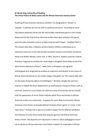 | Uncontrolled Keywords | African American literature, pedagogy, crime fiction, canon, Attica Locke |