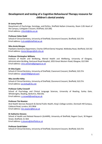 Porritt, J., Rodd, H., Morgan, A., Williams, C., Gupta, E., Kirby, J., Creswell, C., Newton, T., Stevens, K., Baker, S.,, Prasad, S. and Marshman, Z. (2017) Development and testing of a Cognitive Behavioural Therapy resource for children's dental anxiety. JDR Clinical and Translational Research, 2 (1). pp. 23-37. ISSN 2380-0852 doi: 10.1177/2380084416673798