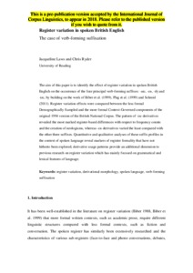 Laws, J. orcid id iconORCID: https://orcid.org/0000-0001-7275-116X and Ryder, C. (2018) Register variation in spoken British English: the case of verb-forming suffixation. International Journal of Corpus Linguistics, 23 (1). pp. 1-27. ISSN 1569-9811 doi: 10.1075/ijcl.16036.law