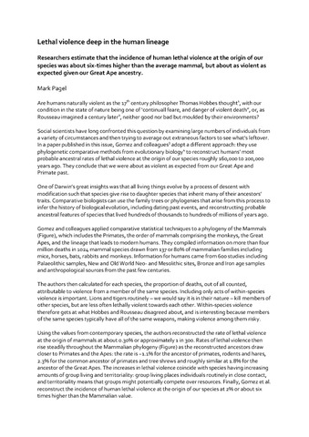Animal behaviour: lethal violence deep in the human lineage.
