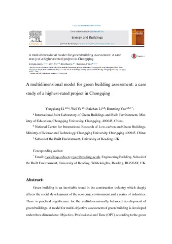 A multidimensional model for green building assessment: a case study of a highest-rated project in Chongqing.