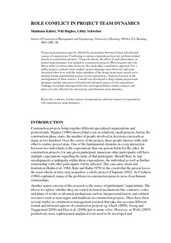 Kabiri, S. orcid id iconORCID: https://orcid.org/0000-0002-5311-7304, Hughes, W. orcid id iconORCID: https://orcid.org/0000-0002-0304-8136 and Schweber, L. orcid id iconORCID: https://orcid.org/0000-0002-6069-0002 (2014) Role conflict in project team dynamics. In: 30th Annual ARCOM Conference, 1-3 September 2014, Portsmouth, UK.