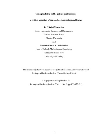 Conceptualising public-private partnerships: a critical appraisal of approaches to meanings and forms.