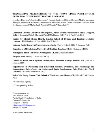 ORCID: https://orcid.org/0000-0002-6649-7895, Divan, G., Dawson, G., Johnson, M. H., McPartland, J. C., Singh, N. C. and Patel, V.