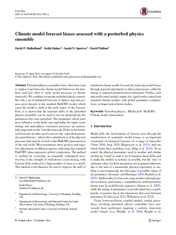 Perturbed physics ensembles have often been used to analyse long-timescale climate model behaviour, but have been used less often to study model processes on shorter timescales. We combine a transient perturbed physics ensemble with a set of initialised forecasts to deduce regional process errors present in the standard HadCM3 model, which cause the model to drift in the early stages of the forecast. First, it is shown that the transient drifts in the perturbed physics ensembles can be used to recover quantitatively the parameters that were perturbed. The parameters which exert most influence on the drifts vary regionally, but upper ocean mixing and atmospheric convective processes are particularly important on the 1-month timescale. Drifts in the initialised forecasts are then used to recover the ‘equivalent parameter perturbations’, which allow identification of the physical processes that may be at fault in the HadCM3 representation of the real world. Most parameters show positive and negative adjustments in different regions, indicating that standard HadCM3 values represent a global compromise. The method is verified by correcting an unusually widespread positive bias in the strength of wind-driven ocean mixing, with forecast drifts reduced in a large number of areas as a result. This method could therefore be used to improve the skill of initialised climate model forecasts by reducing model biases through regional adjustments to physical processes, either by tuning or targeted parametrisation refinement. Further, such regionally tuned models might also significantly outperform standard climate models, with global parameter configurations, in longer-term climate studies.