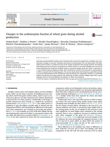 Changes in the arabinoxylan fraction of wheat grain during 1 alcohol production.