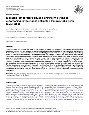 Elevated temperature drives a shift from selfing to outcrossing in the insect pollinated legume, faba bean (Vicia faba).