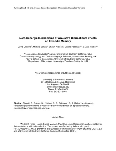 Clewett, D., Sakaki, M. ORCID: https://orcid.org/0000-0003-1993-5765, Nielsen, S., Petzinger, G. and Mather, M.